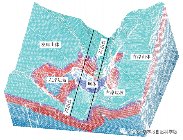 根据白鹤滩大坝工程及水文地质条件、渗控设计方案,建立了大型三维渗流仿真有限元模型,采用稳定渗流理论和排水孔精细化模拟方法,开展正常运行工况大坝渗流场仿真计算,研究大坝自由面、总水头、渗透坡降和渗漏量等渗流场分布特征,分析结构面的渗透稳定性。结果表明:坝基防渗帷幕能够有效阻隔库水从上游向下游的渗漏,有效截断可能存在的渗漏通道。排水孔幕能够有效降低周边自由面,排出坝基以及两岸坝肩处的渗漏水。层间错动带、断层与防渗帷幕和排水孔幕相交处出现较大渗透坡降,其余部位渗透坡降较小。渗控设计方案能够有效控制渗流场,防渗排水设施设计合理。