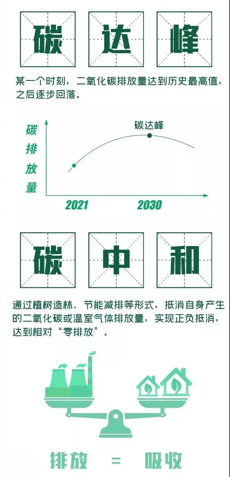 “碳达峰”就是中国承诺在2030年前,煤炭、石油、天然气等化石能源燃烧活动和工业生产过程以及土地利用变化与林业等活动产生的温室气体排放(也包括因使用外购的电力和热力等所导致的温室气体排放)不再增长,达到峰值,之后再慢慢减下去。