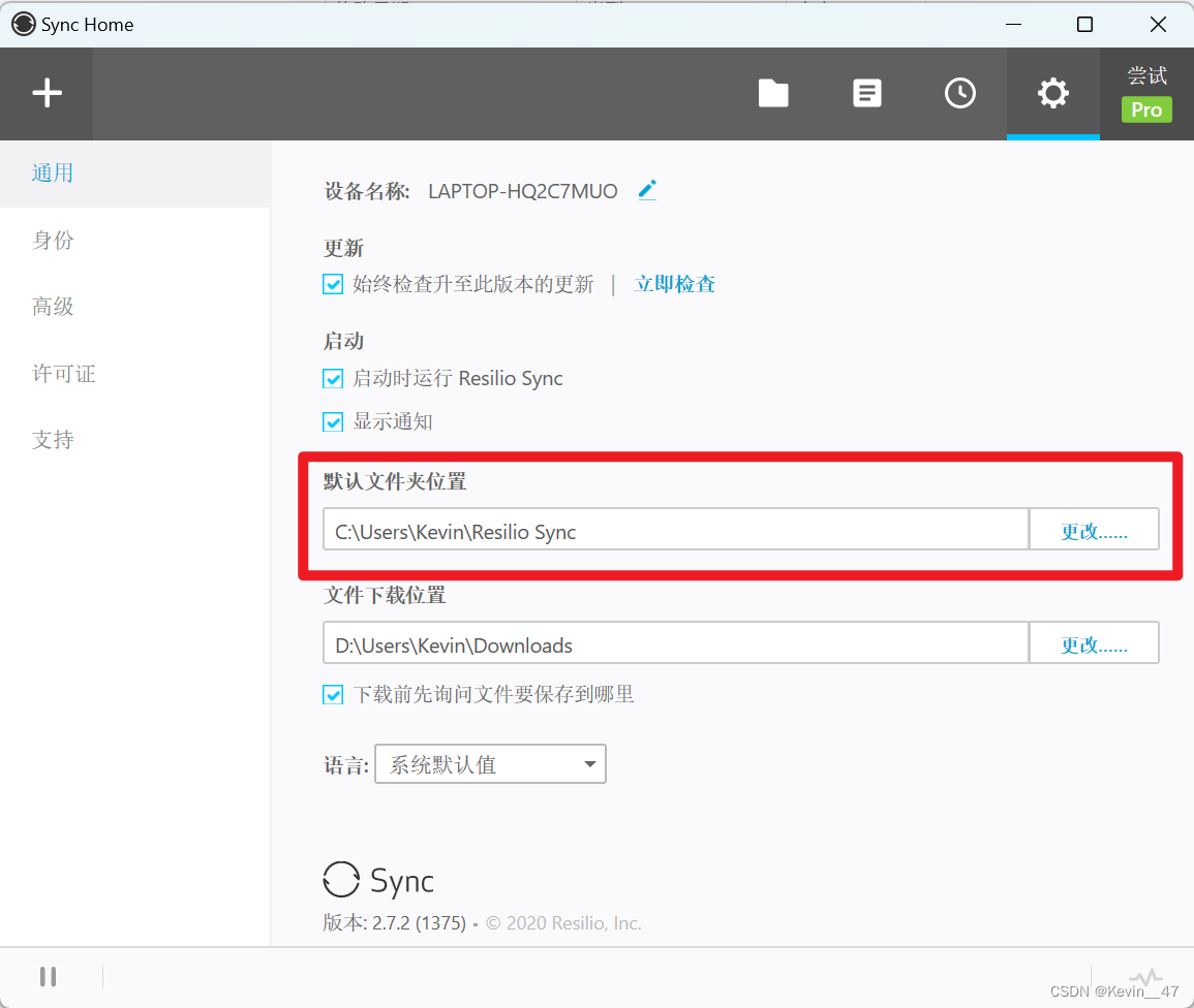 在电脑2-台式机(后文简称主机)上使用也安装了一个Resilio Sync软件。