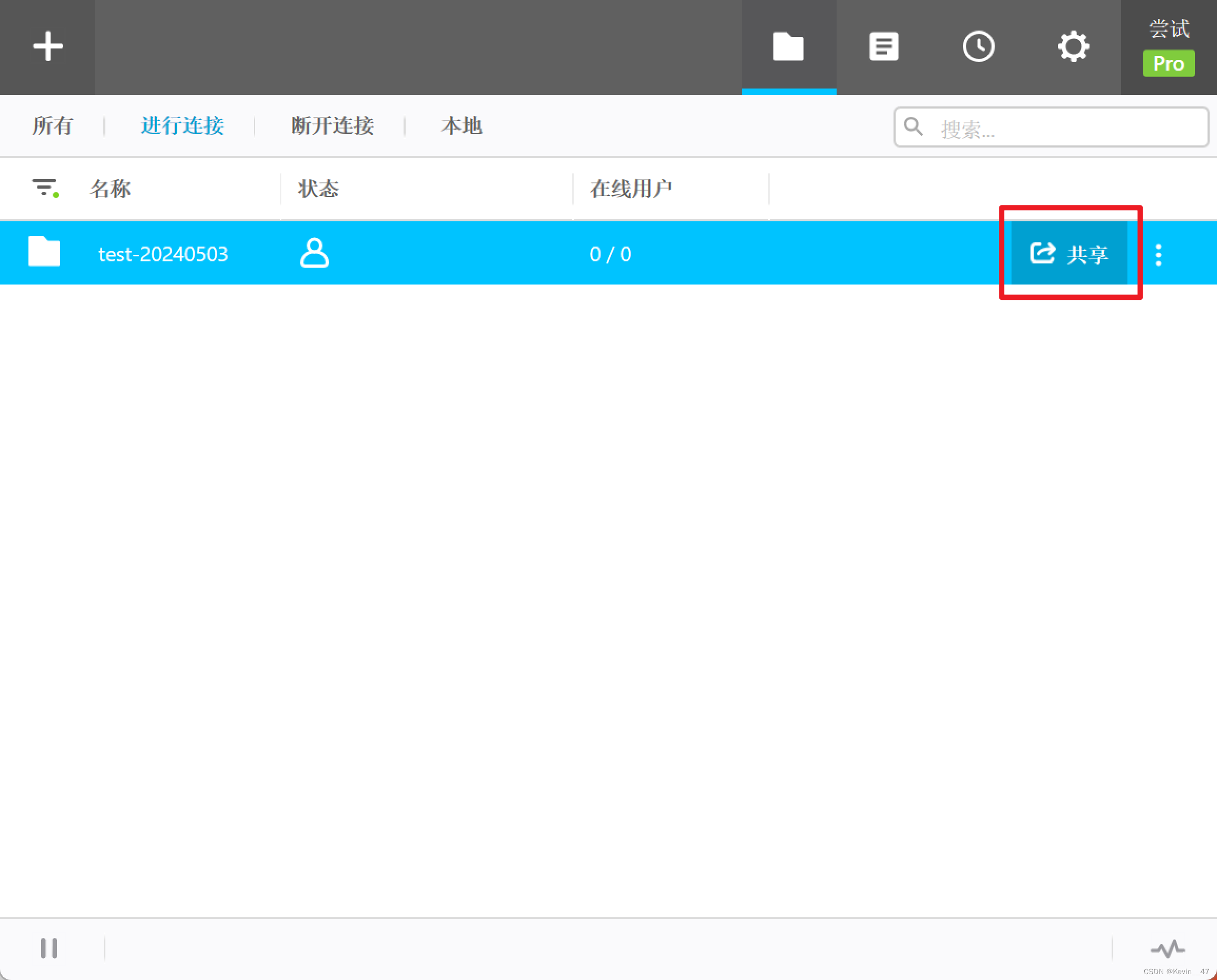 添加好后文件夹会出现在软件的列表中,如图所示,然后点击右侧的共享。