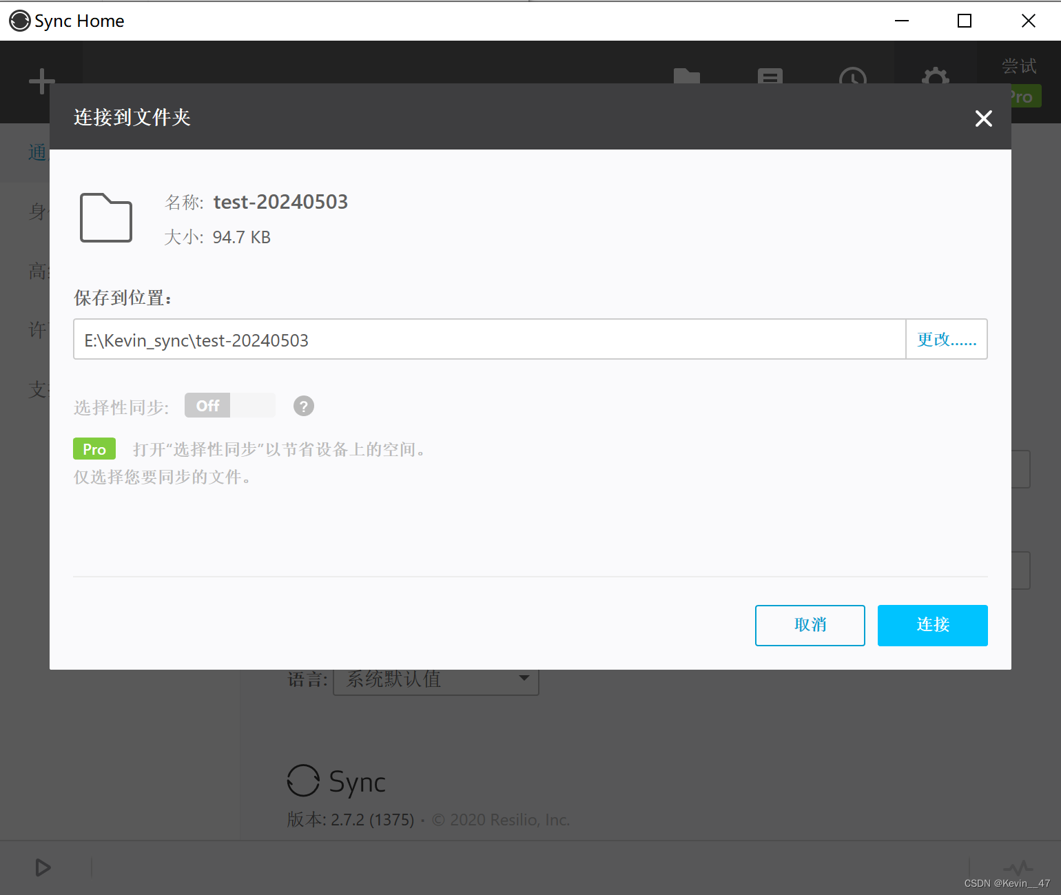 在sync软件中,通过左上方加号,将其作为一个标准文件夹添加到sync软件中。