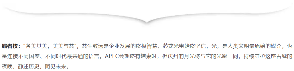 传统的互补格局正在演进为更高层次的创新合作,而芯龙光电其以自主核心技术参与 APEC 核心项目建设,正是这种 “新合作机制” 的生动体现 —— 是创意、技术与人文的深度融合,是两国在产业链上共同升级、智创未来的典范。