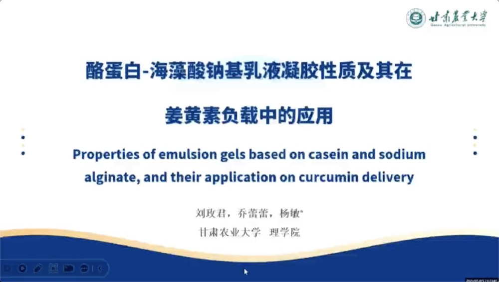 甘肃农业大学杨敏教授等:酪蛋白-海藻酸钠基乳液凝胶性质及其在姜黄素负载中的应用