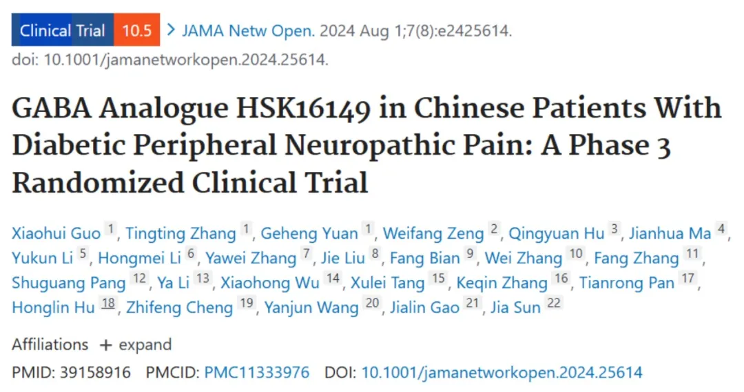 科研动态 | 郭晓蕙教授团队发布克利加巴林治疗糖尿病性周围神经病理性疼痛临床新疗效