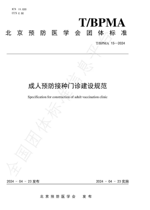 团体标准 | 成人预防接种门诊建设规范(T/BPMA 15—2024)