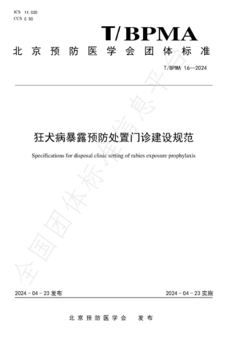 团体标准 | 狂犬病暴露预防处置门诊建设规范(T/BPMA16—2024)