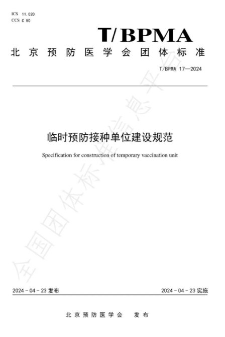 团体标准 | 临时预防接种单位建设规范(T/BPMA17—2024)