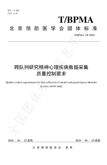 团体标准 | 跨队列研究精神心理疾病数据采集质量控制要求(T/BPMA18—2024)