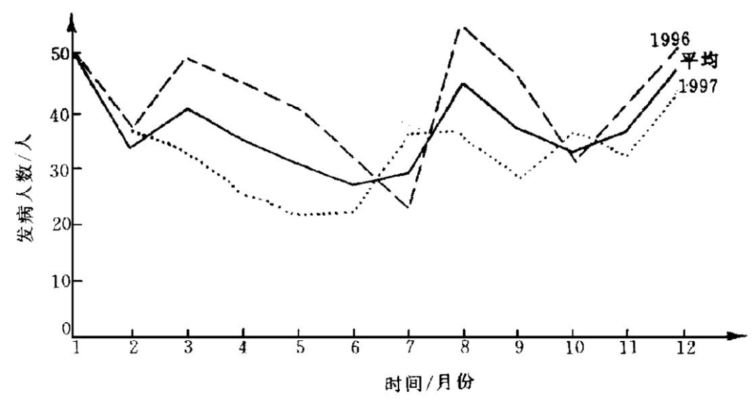图5 北京市某医院1996、1997年逐月呼吸道感染病例数(李青春等,1999)
