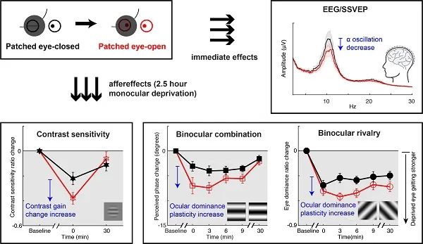 双眼平衡对视觉敏感度、立体视觉等功能至关重要。对于双眼不平衡的成人,通过对较弱的眼睛进行单眼遮盖治疗可以诱发眼优势可塑性,促进双眼平衡的恢复。中国科学院生物物理研究所研究员张朋课题组与温州医科大学附属眼视光医院研究员周佳玮团队合作,通过单眼遮盖结合睁闭眼实验范式,揭示了大脑内生神经活动对眼优势可塑性的影响,为弱视的治疗提供了新思路。