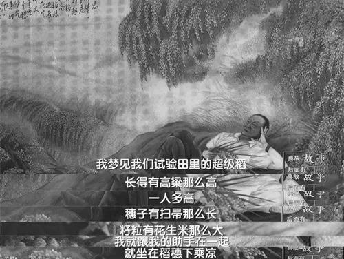 他一直在朝着这两个目标不断努力,袁隆平曾多次畅谈他的两个梦想,除了让杂交水稻覆盖全球的梦想之外,还有另外一个“禾下乘凉梦”。他曾梦见试验田里的超级杂交水稻长得比高粱还高,穗子有扫帚那么大,谷粒有花生米那么大,他和助手坐在瀑布般的稻穗下乘凉。