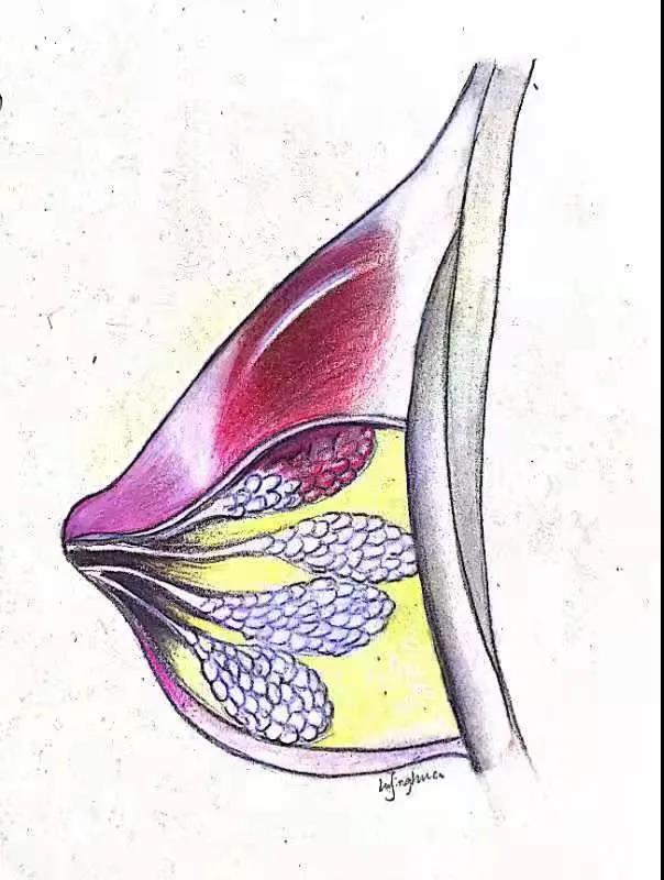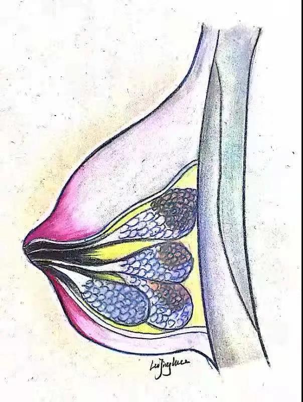 乳腺组织属于浅表器官,高频的超声可以清楚的在屏幕上显示乳腺的各个分层结构:皮肤层,皮下组织,脂肪层,腺体层,乳房后间隙及胸肌组织,以及脂肪层的Cooper韧带,腺体层内的小叶和导管结构也可显示。