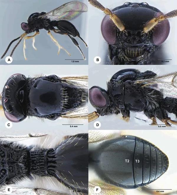 中科院华南植物园、中山大学和华南农业大学科研人员发现稀有寄生蜂(寄螯细蜂)新种——巨点寄螯细蜂和拟黑带寄螯细蜂。
