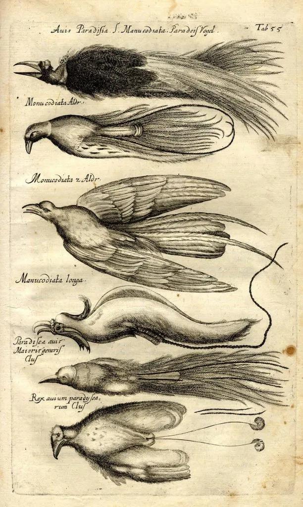 四百多年前,麦哲伦船队返回西班牙的旅程中从新几内亚通过贸易交换带回不少当地特产,其中就包括极乐鸟标本,当时的欧洲贵族第一次见到羽毛如此漂亮的鸟类,都感到十分惊奇。
