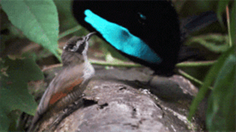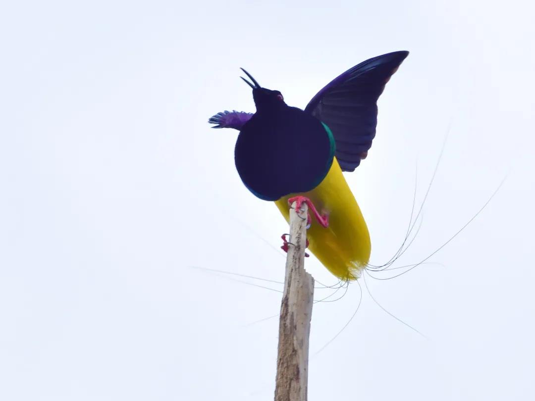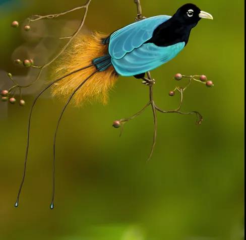 直到对极乐鸟整个属的深入研究后才发现,它们进化出各种花里胡哨的羽毛只不过是用来求偶罢了......