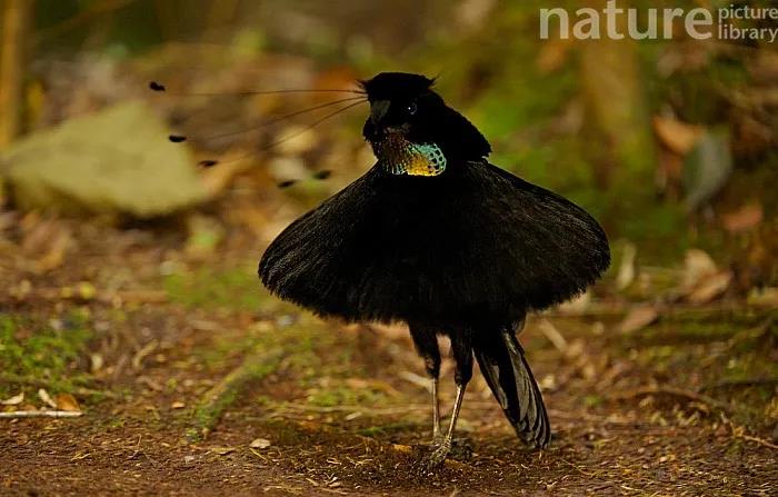 比如下面这位雄性劳式六线风鸟,六根如金属丝般的长羽从眼部上方向后延伸,最后在尾端形成一个扁平状的尖端,求偶的时候则会抖动长羽来吸引异性的注意。