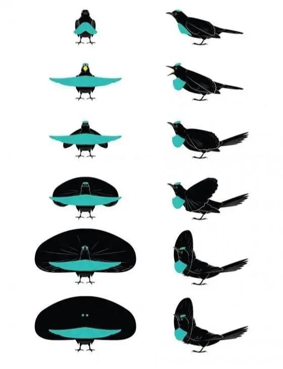 不过光是张开翅膀还不够,因为它们的背面其实非常普通,所以在向雌鸟献殷勤的时候,为了只把自己的正面朝向雌鸟,它们还需要练就一身灵活的走位,才能展示自己的最佳状态。